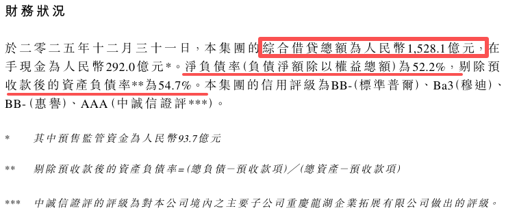 目前,龙湖的有息负债是1528亿,去年负债足足降了235亿。